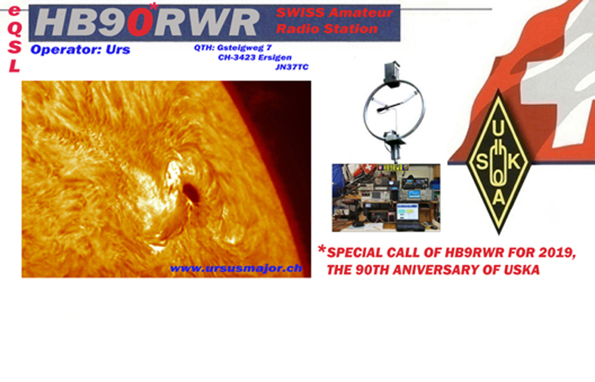 Anlässlich des 90-jährigen Jubiläums der USKA (Union Schweizerischer Kurzwellen Amateure) bewilligt das BAKOM (Bundesamt für Kommunikation) allen HB9-er Stationen für 2019 eine zusätzliche Null im Präfix des Rufzeichens zu führen. HB9RWR nutzt diese freiwillige Möglichkeit und ist im Jahr 2019 als HB90RWR aktiv.